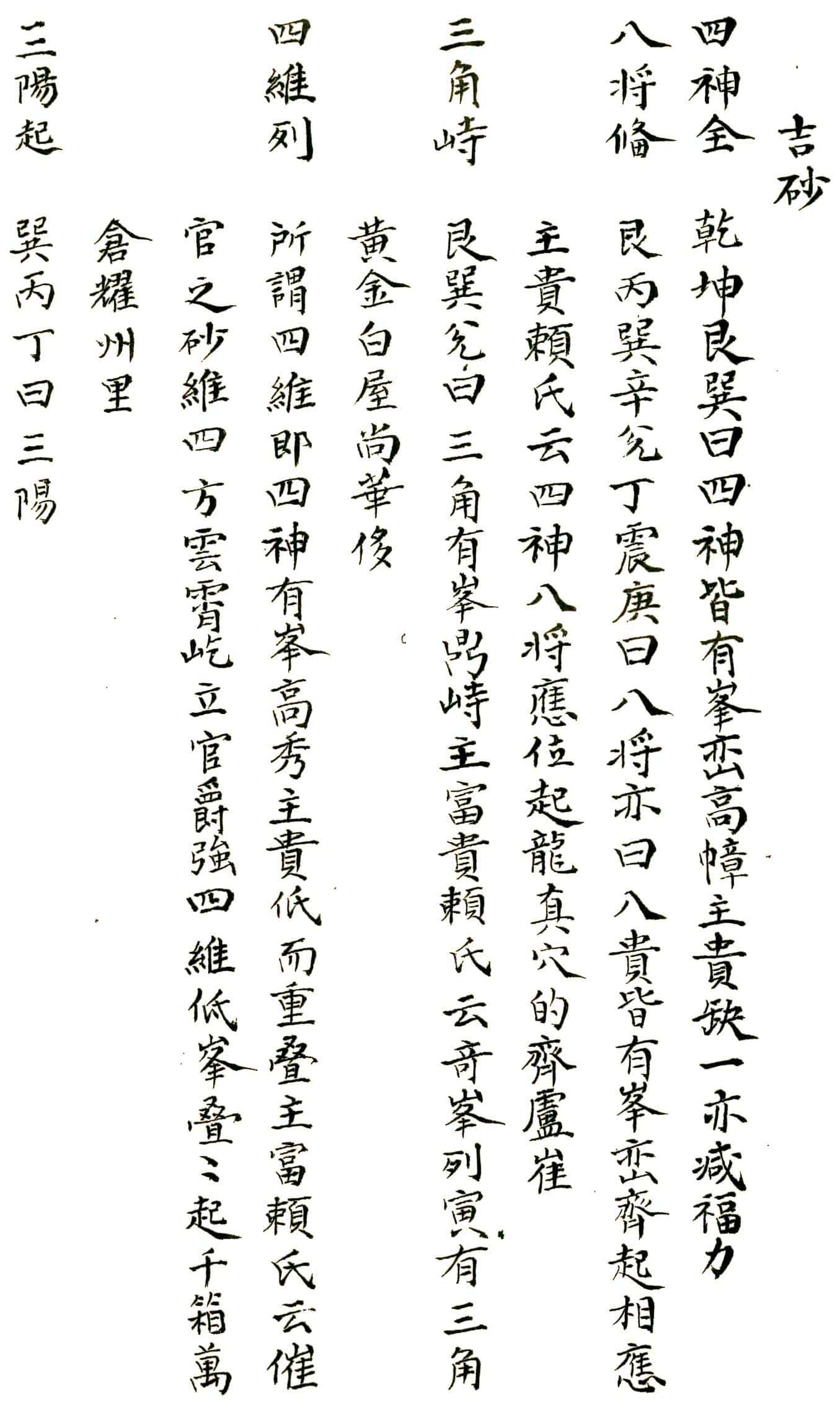 正变歌正变歌,九星正变何其多,姑幕正形為次第,略排图例正蒙讹,变形触类由人举,心自聪明事不难,太阳正体覆钟似,太阴新月半光辉,金水両肩似飞凤,紫炁貟直笏囊垂,天财正躰如屏笏,凹脑双脑如官誥,燥火尖刀样最凶,扫荡曳帛展旗同,天罡张盖形相并,孤曜饱直如覆磬,次名开口三悬乳,四是弓脚五双臂,单股第六侧脑七,八為没骨平面毕,此号九星逓变名,每星九九変其形,只是脚变头不变,活泼心中应变成,吾今宜切传程子,為念孤贫兴奋情,阴阳造化神鬼秘,寡德之家莫乱鸣,轻将此术沽财酒,丧行招殃自不轻。