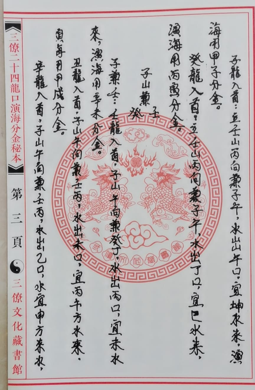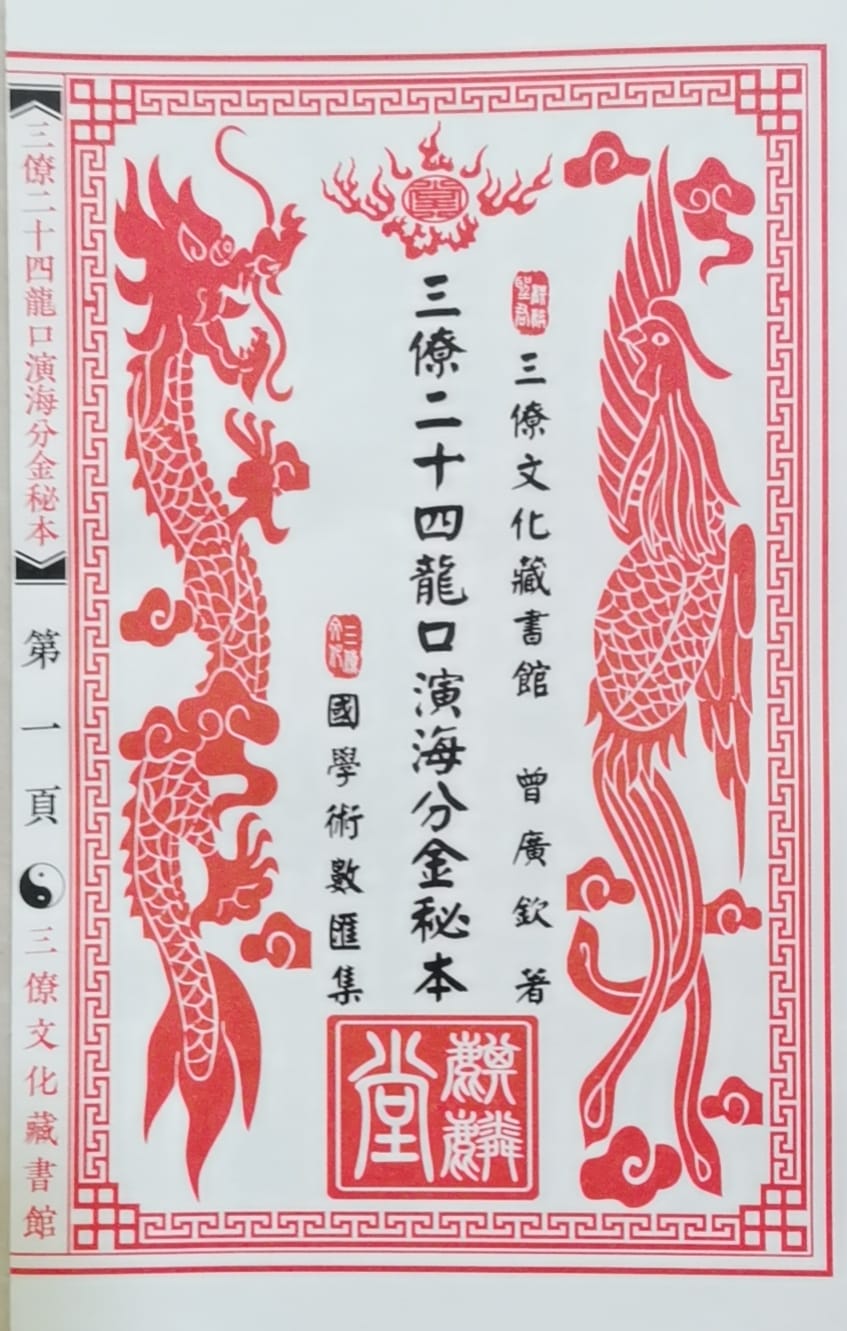 《三僚二十四山龙口演海分金秘本》,曾广钦编著,内传核心演海分金内容,主要详细的写出了三僚演海分金的运用方法,来龙配合走口达到催丁财贵的效果,全本共38页。曾广钦为曾氏二房余庆堂人,是杨公救贫(筠松)第三十七代弟子与曾公文辿第三十六代子孙。