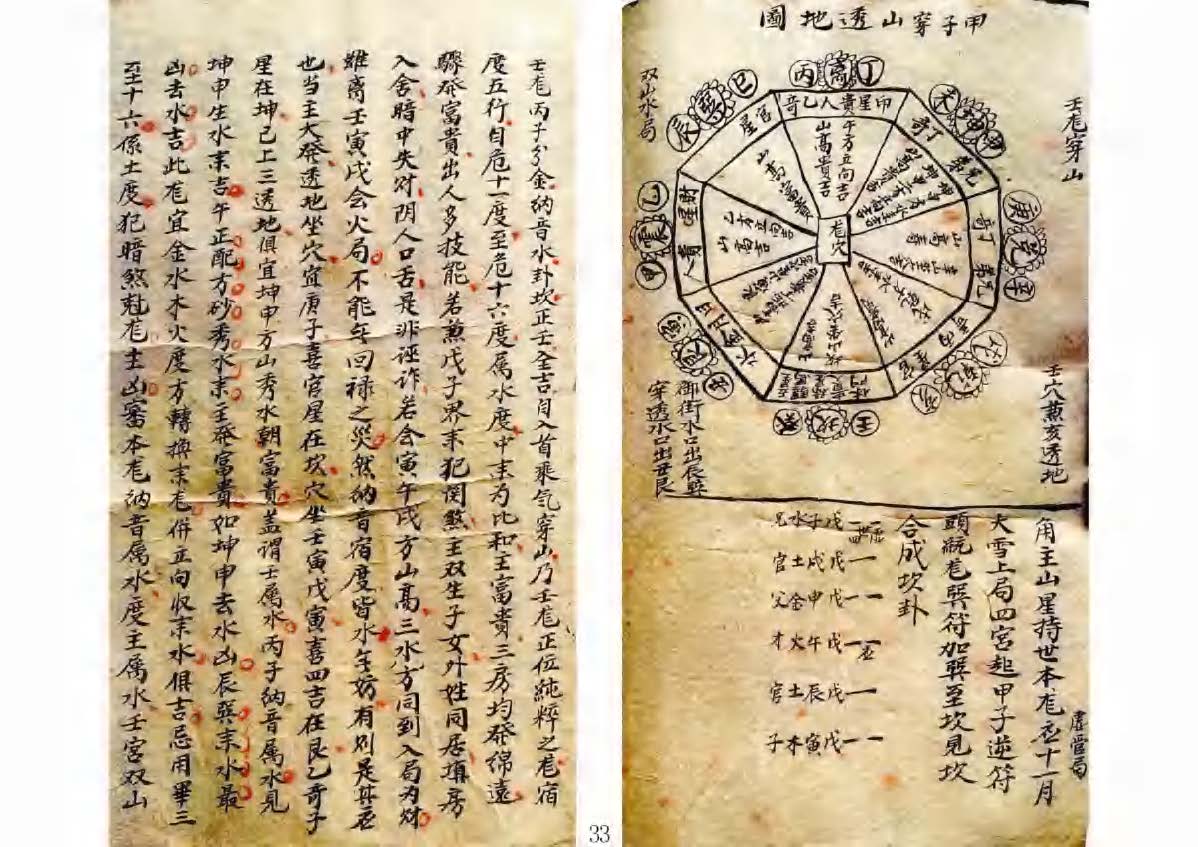 《杨公地命诀》,六十龙穿山透地有真传,清-江西徐正岳抄本,内容丰富,绘具图像数十种,全本共158个双面,合计316页。