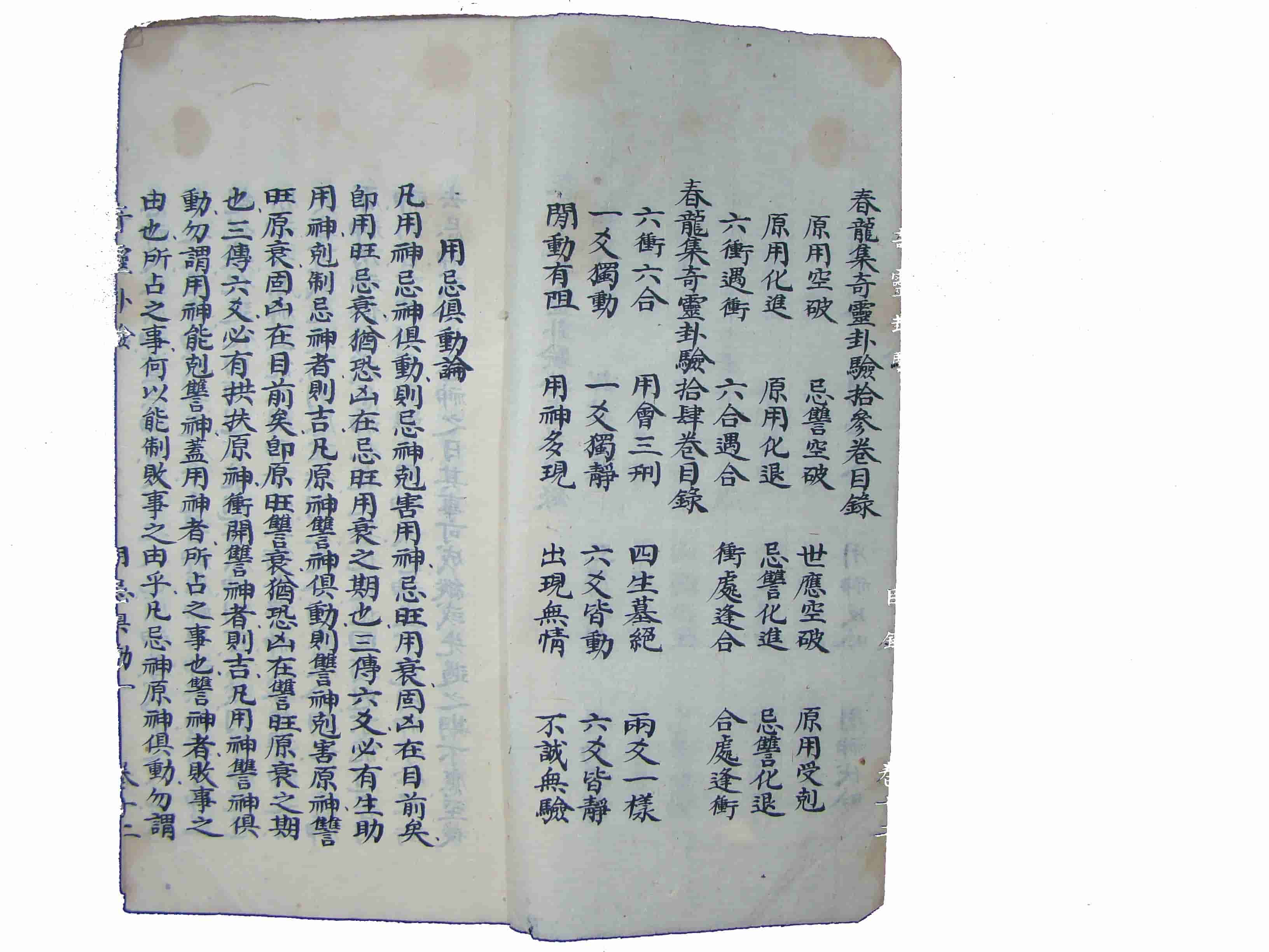 此卷内容包括:用忌俱动,合住用神,冲散用神,冲起用神,用神伏藏,用伏原动,用神避凶,原用三合,忌讐三合,用忌三合,用神反吟,用神伏吟。