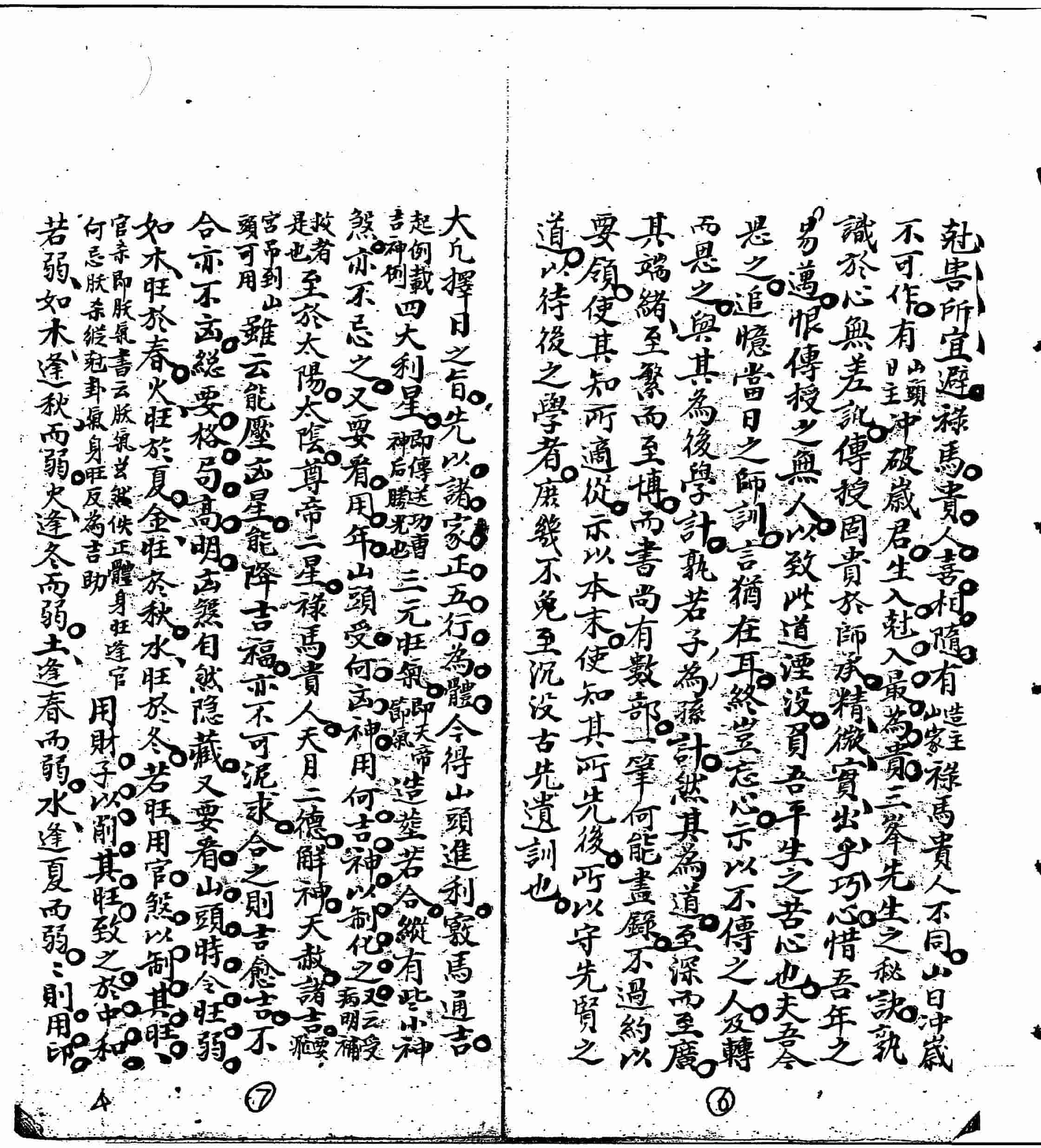 盖选择一理,乃祸福所由关,兴亡在此,择其善,则可保其财丁而无虞,择其不善,亦可致损失於无休,祸福兴亡,捷响应也,其為道岂浅鲜哉,予也少志群书,老不怠倦,不禁於斯道,三致意焉,然斯道也,吾尝厯观其事,探索其旨,祗见玄而又玄,岂旦昔之功,所能毕乃事哉,予探求数十年,尚不能无离合之忧,返躬自问,祗為有添於所学,岂敢称名於常世,乃不意今之术士,啄啄争鸣,我為人择吉造塟,吾能迢吉神,而避凶神,某月某日吉神制凶神,保主家福德所致也,殊不知吉神乃助福之星,非发福之基也,发福之基,全在四柱格局,而吉凶祸福,虽隐寓于四柱之内,宝照著于四柱之中,盖格局孚成凶神,不能操其权,格局偏枯,吉神不能为之福,若四柱逆其规,纵使满目吉神,避诤凶神,而欲为人造福,吾恐福未必得,而祸必相随矣,要之选择之道,不外生尅制化之理,扶助剥削之功,四时较以和平,三元要成格局,至于刑冲尅害所宜避,禄马贵人喜相随,有造主山家禄马贵人不同,山日冲岁不可作,有山头日主冲破岁君,生入,尅入最为贵,三峰先生之秘诀,孰识于心无差讹,传授固贵于师承,精微实出乎巧心,惜吾年之易遇,恨传授之无人,以致此道湮没,负吾平生之苦心也,夫吾今思之,追忆当日之师训,言犹在耳,终岂忘心,示以不传之人,转而思之,与其為后学计,孰若子為孙计,然其為道,至深而至广,其端绪,至繁而至博,而书尚有数部,一笔何能尽錄,不过约以要领,使其知所适从,示以本末,使知其所先后,所以守先贤之道,以待后之学者,庻几不免至沉没古先遗训也。