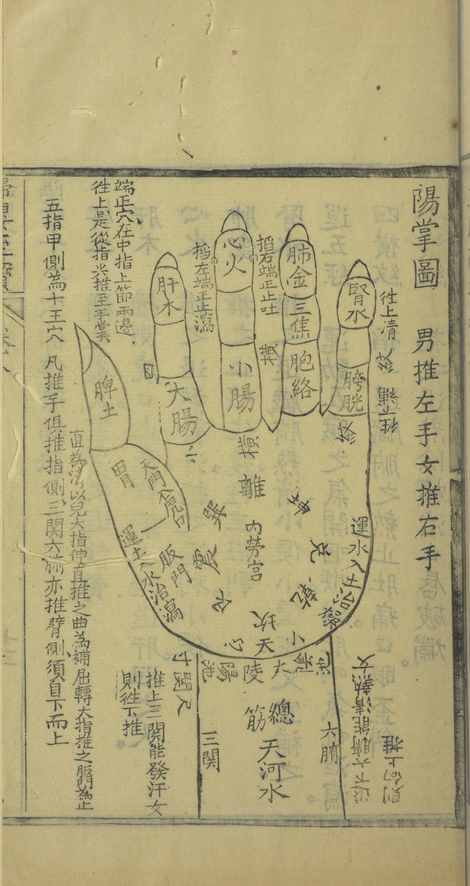 《增订妇婴至宝》8卷,清.徐恜杠辑,徐尚慧 (原刊),清光绪戊子14年1888年夏季重鐫刻本,此版本内含多个图形图片,详图解释多种小儿推拿法,全书合计304页。