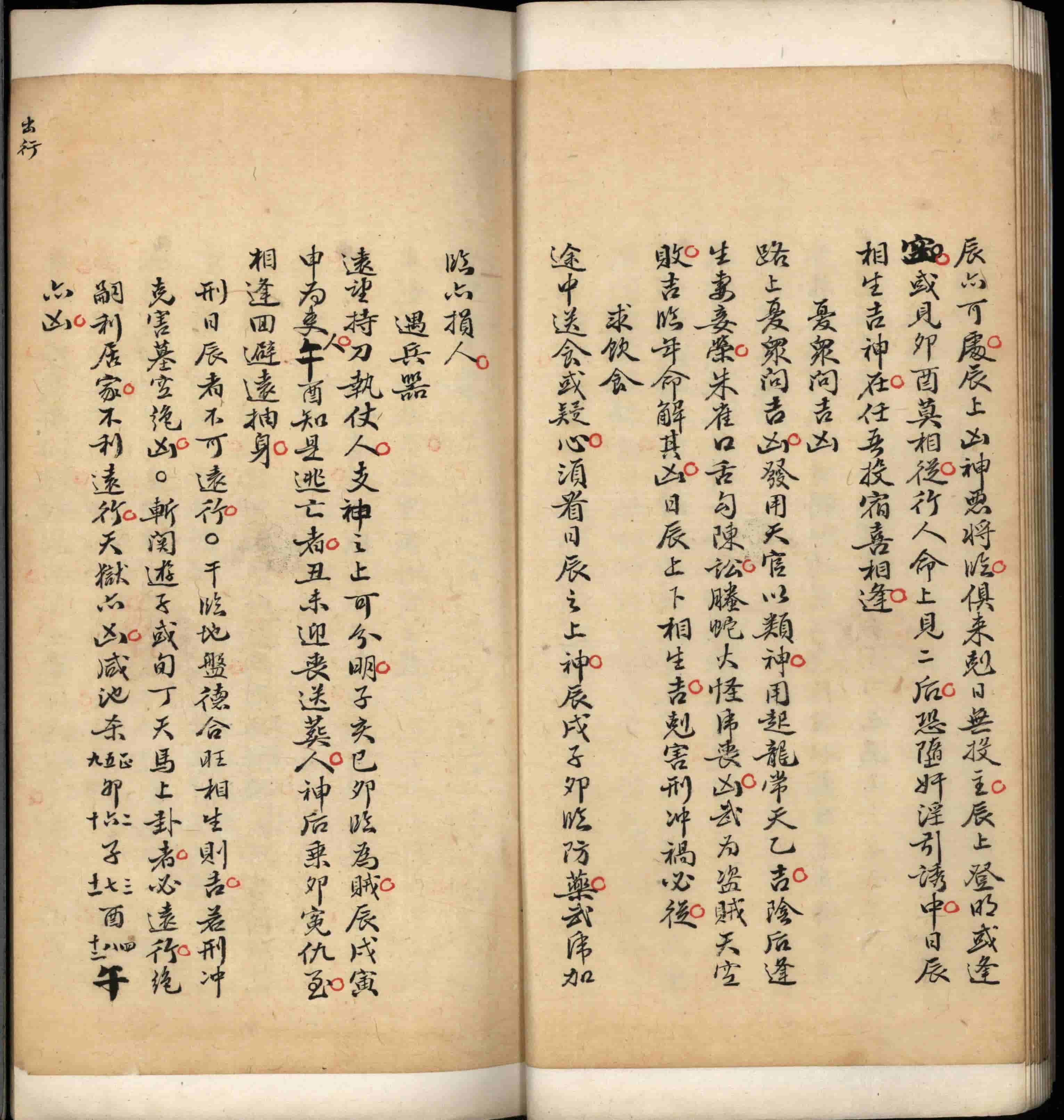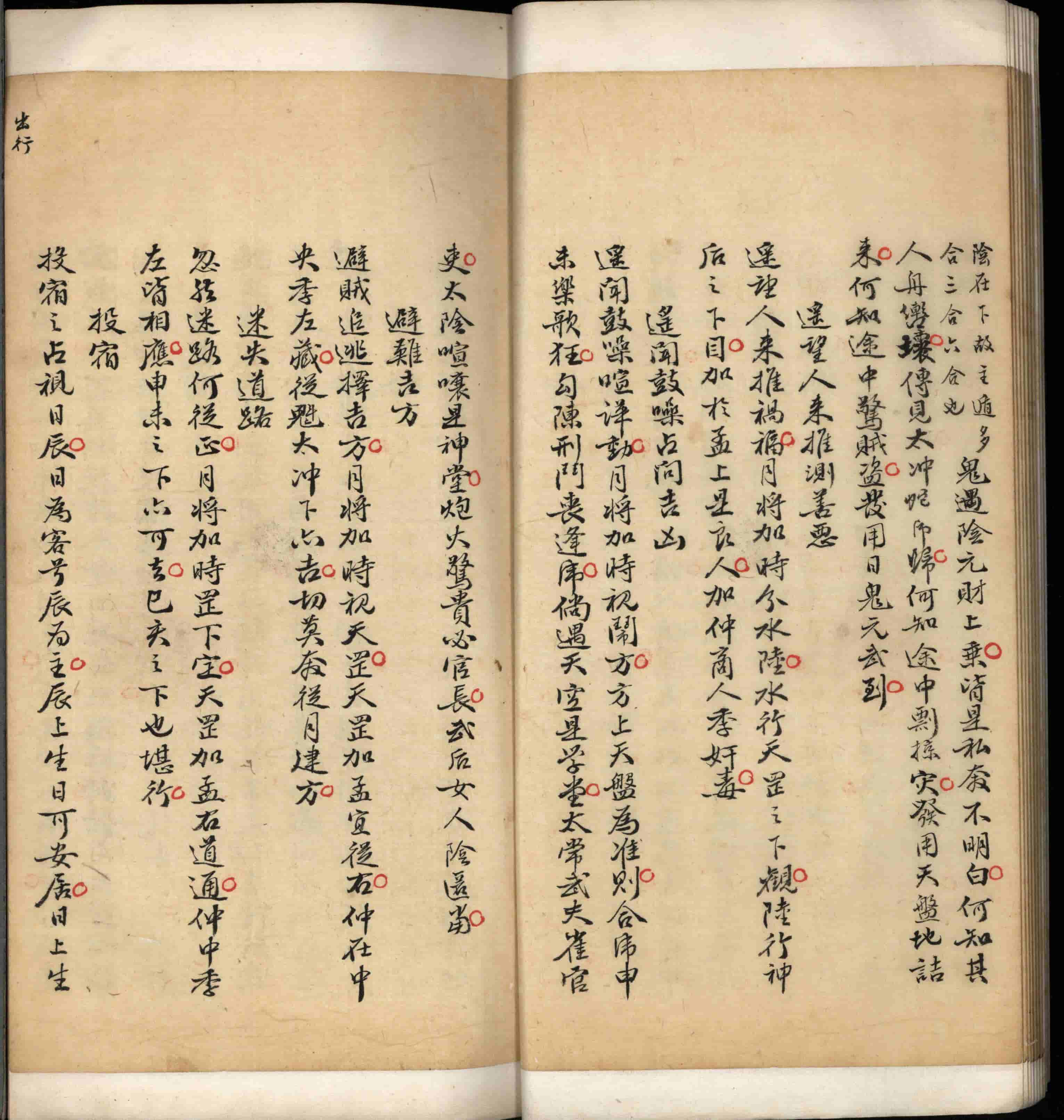 出行,日辰论,吉凶断,遥望人来推测善恶,遥闻鼓噪占问吉凶,避难吉方,迷失道路,投宿,忧众问吉凶,求饮食,遇兵器,六甲出诀,途次风雨,占人被差行否,出行总论,久暂远近论,行人去向,信之虚实,何知章。