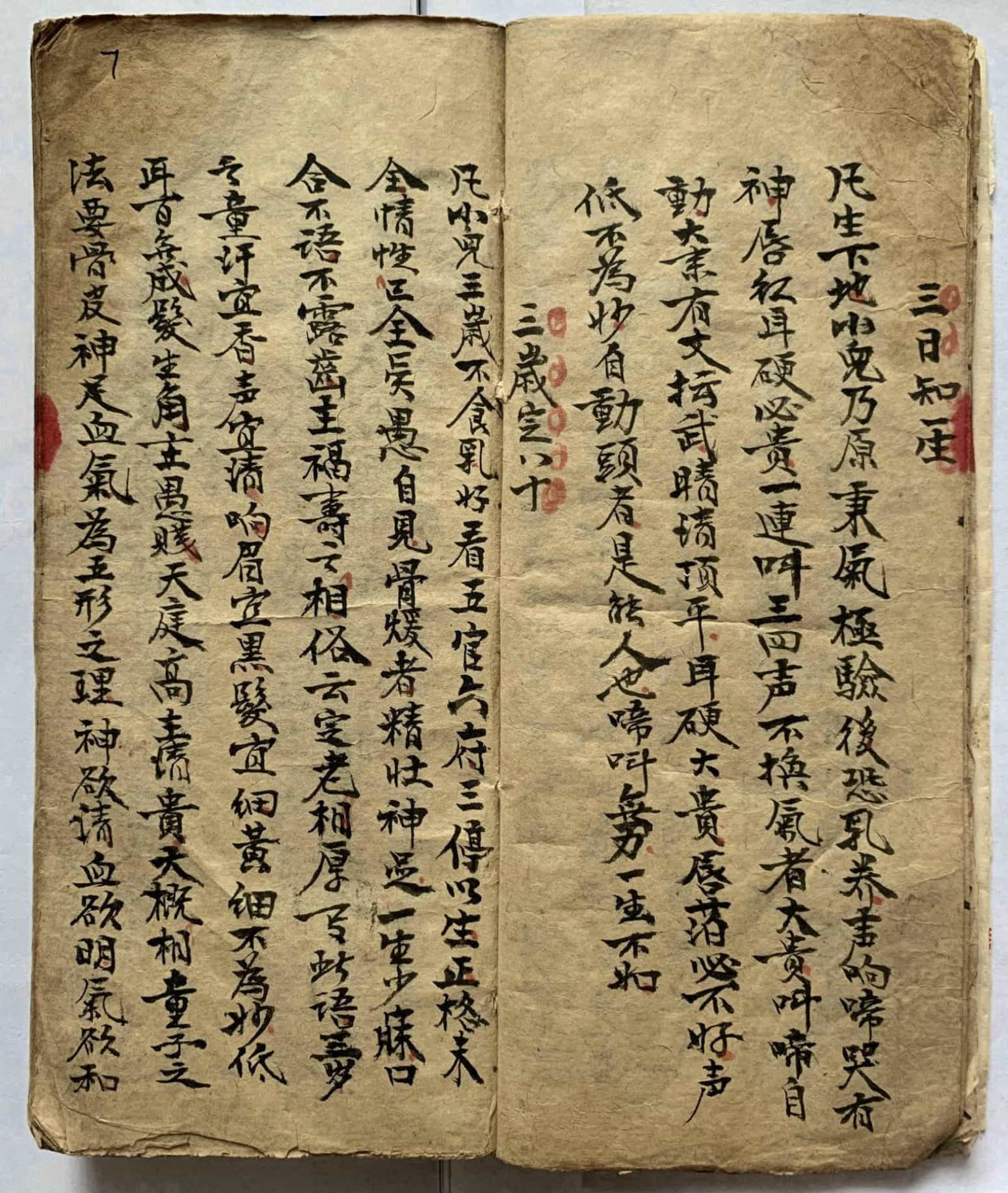 凡小儿初生下地,红黑色为妙,白色主月内身w,白度滑如糊,因临盆房事所伤,生后主产疾疮难养,七仲好养,耳硬好养主贵,头发齐眉好养亦多福利,头皮宽厚好养,鼻孔出气闭口气睡好养,鼻高红厚唇好养,有神啼哭先大后大好养,阴囊縐纹黑弦好养,有二十一件不好养,头皮急三岁关,面大无梁一岁关。。。