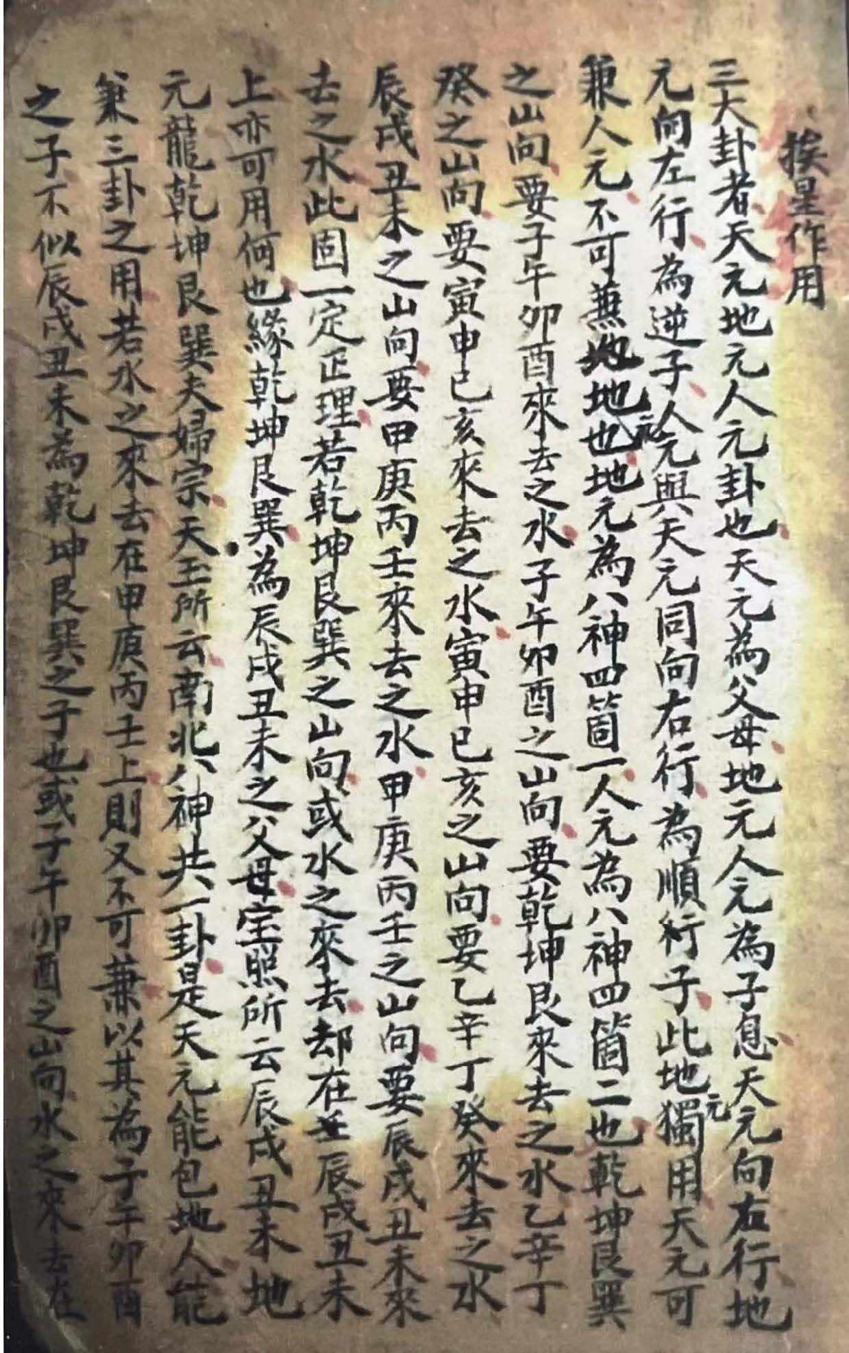 三大卦者,天元地元人元卦也,天元為父母,地元人元為子息,天元向右行,地元向左行,為逆子,人元与天元同向右行,為顺行子,此地元独用,天元可兼人元,不可兼地元也,地元為八神四箇一,人元為八神四箇二也,乾坤艮巽之山向,要子午夘酉来去之水,子午卯酉之山向,要乾坤艮来去之水,乙辛丁癸之山向,要寅申已亥来去之水,寅申已亥之山向,要乙辛丁癸来去之水,辰戌丑未之山向,要甲庚丙壬来去之水,甲庚丙壬之山向,要辰戌丑未来去之水,此固一定正理,若乾坤艮巽之山向,或水之来去,却在辰戌丑未上,亦可用何也,缘乾坤艮巽,為辰戌丑未之父母,宝照所云辰戌丑未地元龙乾坤艮巽夫妇宗,天玉所云南北八神共一卦,是天元能包地人,能兼三卦之用,若水之来去在甲庚丙壬上,则又不可兼,以其為子午卯酉之子不似辰戌丑未為乾坤艮巽之子也,或子午卯酉之山向,水之来去在甲庚丙壬,亦自可用,若乾坤艮巽之山向,兼寅申巳亥,不得子午卯酉来去之水,得乙辛丁癸来去之水,亦為可用,子午夘山向,兼乙辛丁癸,不得乾坤艮巽来去之水,得寅申巳亥来去之水,亦為可用,至於甲庚而丙壬辰戌丑未地元卦,定是独用,不可兼天人两元,故此三卦,总要干向支水,支向干水,方合天玉挨加之法,秀水于楷云,并无挨星之法,一卦三山篇内旋云,以俟世之深明挨星者,又以干向支水,為不相符合。