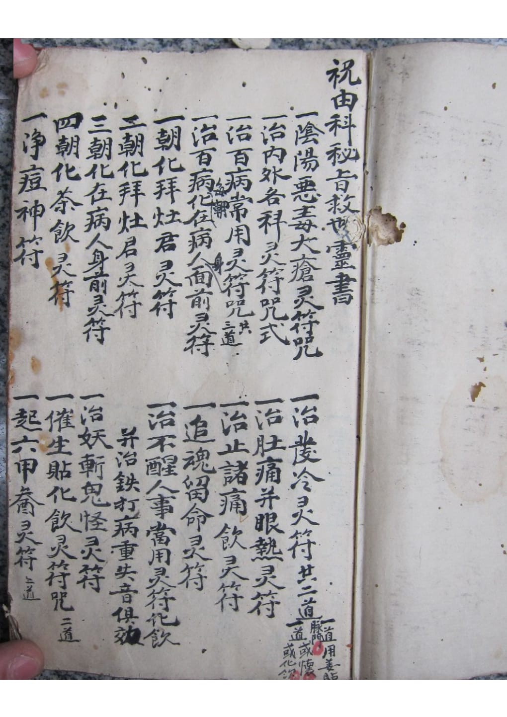 医家有十三科,内有祝由,乃轩辕黄帝设立灵符疗治大小男女诸般内外杂症及除邪辟魅,以补药饵,所不逮祝者,祷祝也,由者祷祝疗病之所由者也,故名曰祝由,但医方疗书流傅万世,而祝由一科空有见闻,宋浮熙戊申冬季节度使稚哥,奉命修理黄河,掘出一碑,上有符章人不能识,有陜西云水道人张一槎独知其符,系轩辕黄帝垂收苍生製此一科,是以稚哥得其秘传,凡疗疾病其效,如响嗣于景秦年初,有临清徐景清,多方图,谋深求其术,遂得其传,依科调治,各症灵効如神,但不可贪心射利,有负古圣创製,设科悉心至意敬之,一刻不可忘也。