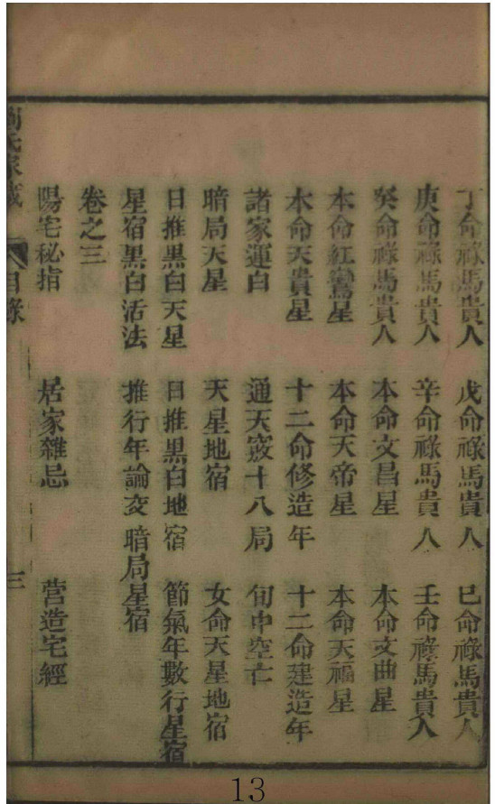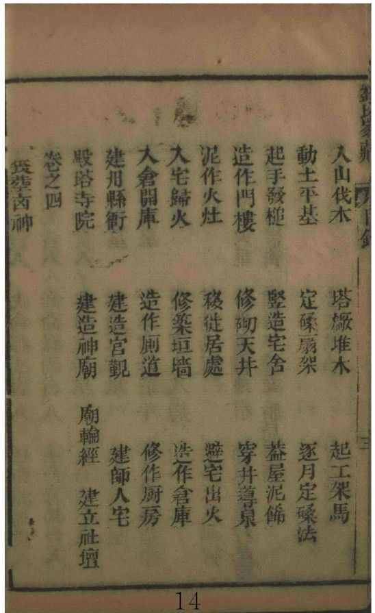 卷三论阳宅秘指、居家杂忌、营造宅经、入山伐木及造作宜忌等,为日常生活择吉指南;