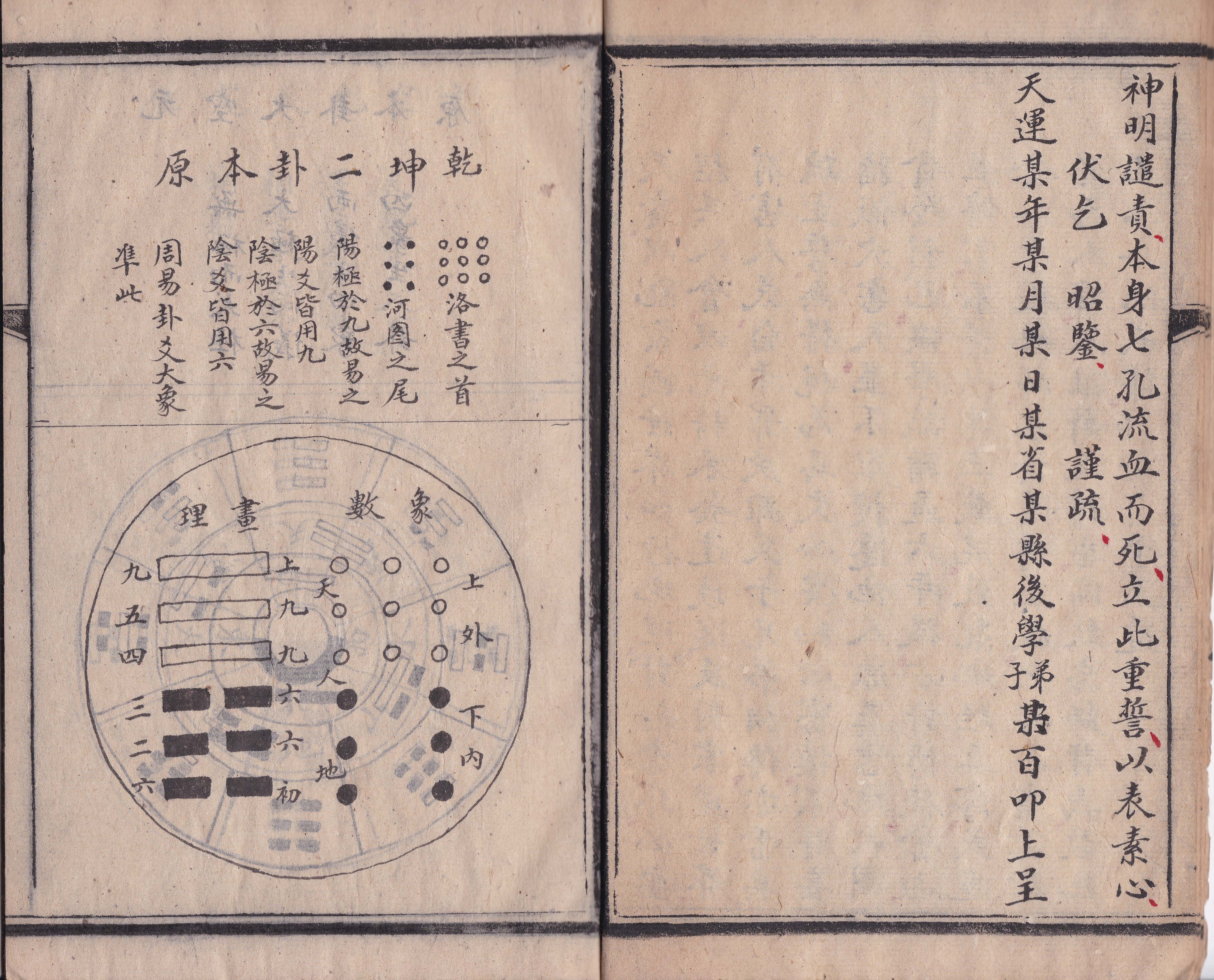 某先生倡行人和地理,创立人和公益会,為人和求地,弟子忝居会内,谨具贄金百两,投拜门下,传授玄空,金龙,雌雄,挨星,城门,太岁,六法,正宗,阐河洛之苞符,抉乾坤之精蕴,承先裕后,永作家传,并传会内,不传会外,為辅国救世保家貲斧,谨遵戒律,不得贪金,妄传会外,并传匪人,洩漏天宝,以乱家国世界,如行地理,对於会外,必要招其入会,以免将来发达歧途,反对家国世界有害人民,自干罪戾,虽父子兄弟相传,亦当具疏立誓,无得视為具文,必要细心审慎,不许妄指假穴害人,并不准擅迁他人原塟吉地,以图贪金利己,俟学识精通六年后,方许传徒,会内,并传家,不得以伪法欺混,致乱地理真传,或遇会外原从地师,未得真傅正授,只有小灵伪术,易惑人信,不准对道转告,倘敢忘师背义,故犯已上各条戒律,弟子自干上遭。。。