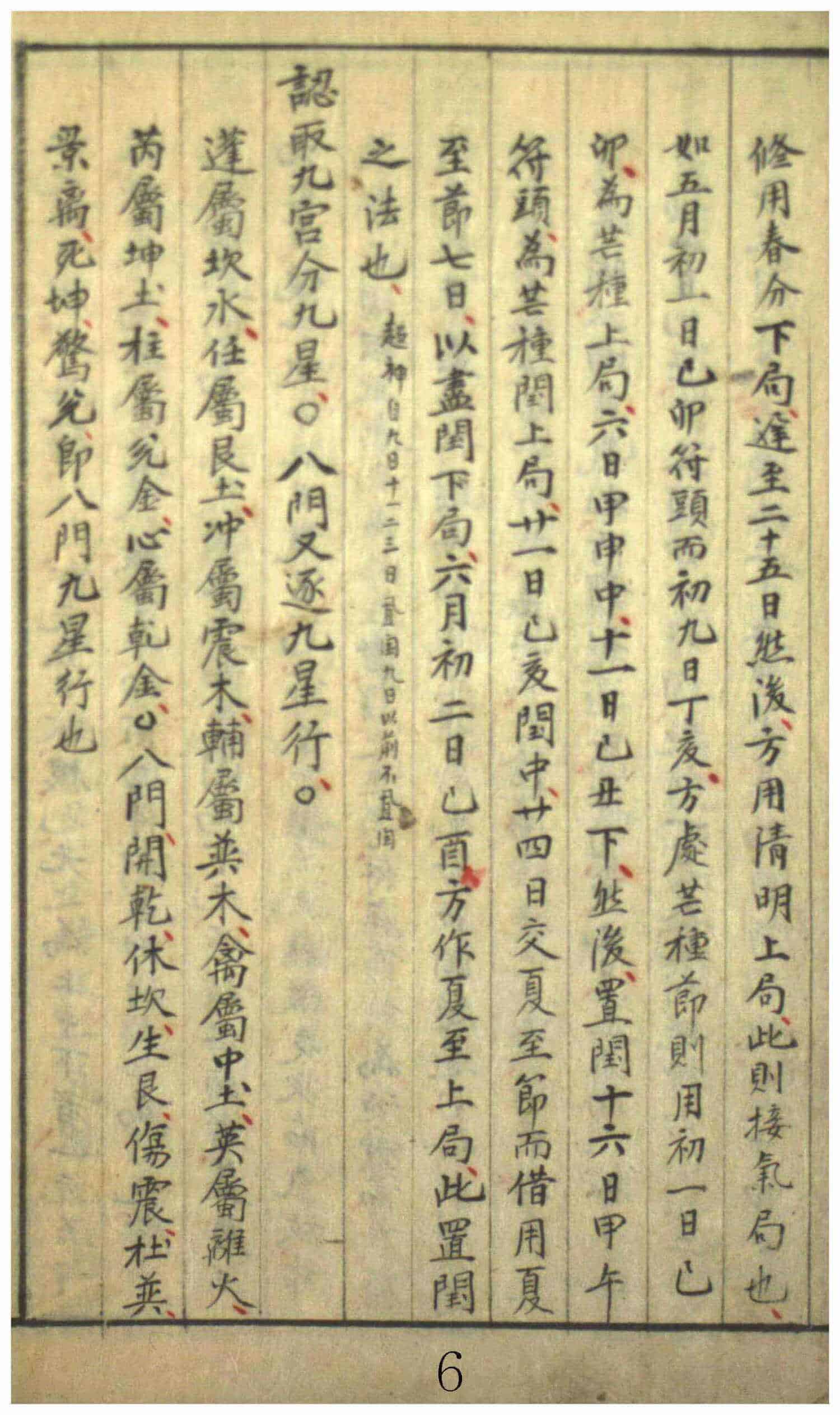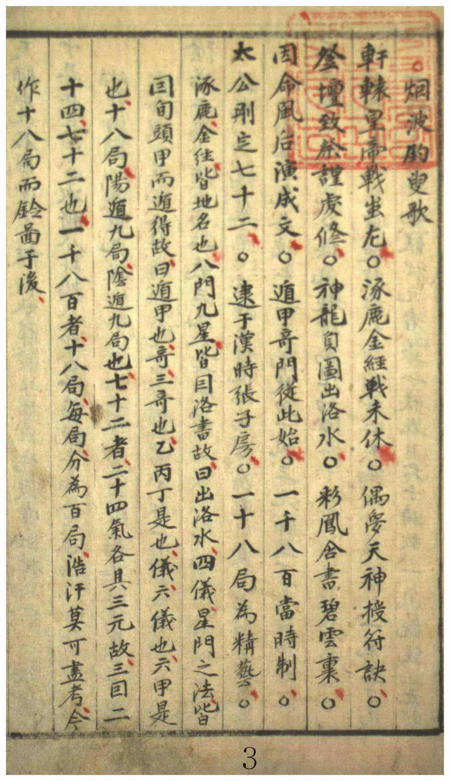 《烟奇要览》,全本178页。内容包括:烟波钓叟歌,奇门总说,遁甲起例,八门九星定位诗,分局起例捷歌,论超接之法,奇门总诀,奇门五十六格,二遁上指诀,诸格总论,奇门断验,六仪吉凶断,八门吉凶断,九星吉凶断,遁甲奇门总诀,洪范设局法,八门付法,年局布例,花奇八门图,东国二十分野图,洪奇天下图局式,天时晴雨赋,罡局气诀,罡局法,历家诀,商贾局等。