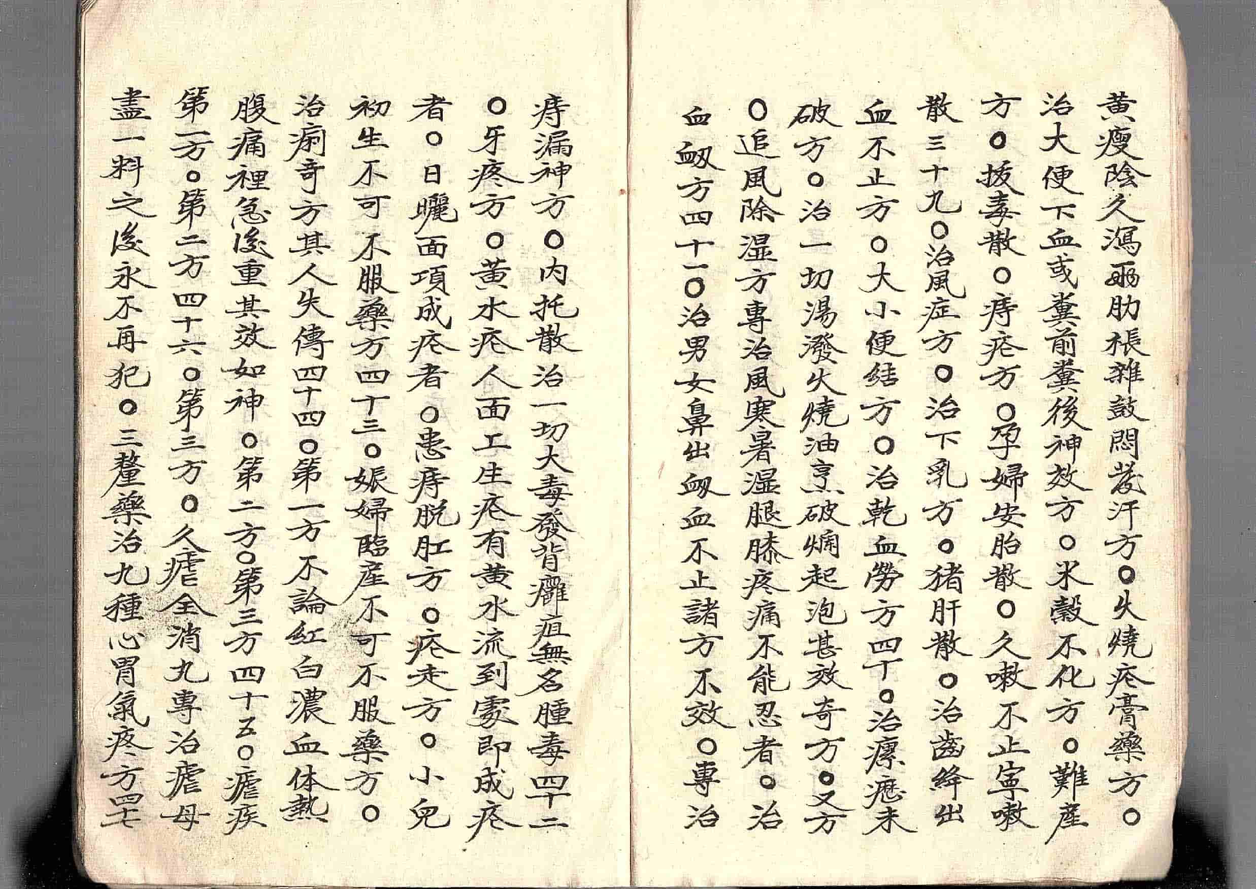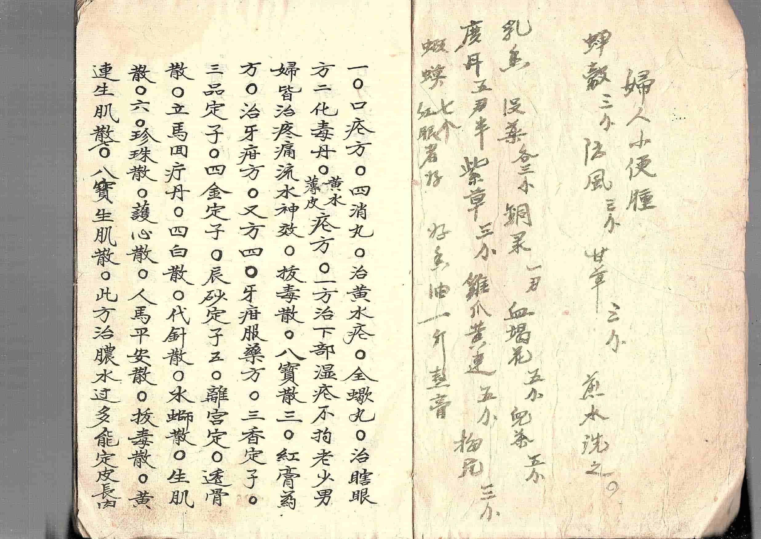 内容包括:牙痛方、化毒丹、八宝散、红膏药方、治牙疳方、牙疳服药又方、三品定子、四金定子、透骨散、四白散、代针散、生肌散、珍珠散、人马平安散、黄连生肌散、八宝生肌散、针头散、玉红散、铁桶膏、桃红散、地疔散、巴豆膏、九龙针、黄连膏药、清凉生肌散、刀尖膏药方、面生疮疱、枯痔散、红燕丹、湿疥疮方、八味丸、十全大补汤、治妇人三十二杂症等。