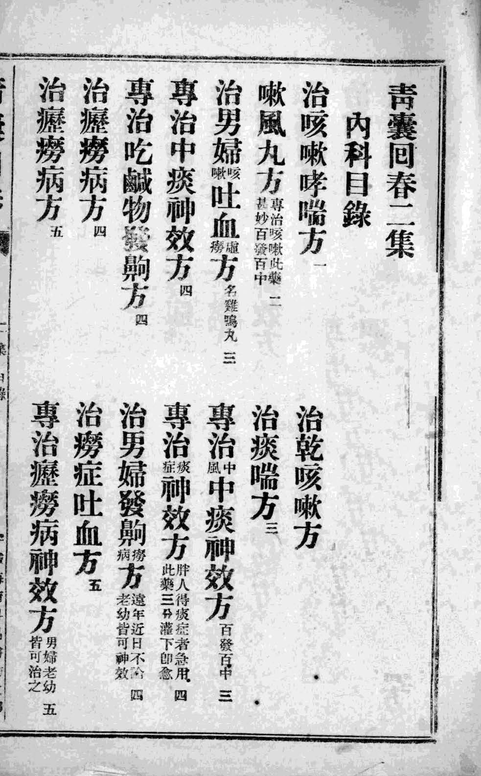 是书何為而作、盖自开坛以来、乩笔日摇疗病无算、而以异地异世论之、犹不為普济、故特按病降方、集方成编、以广為传佈、俾远先后各众生、同蒙再造之福、命名曰青囊回春职此之故。