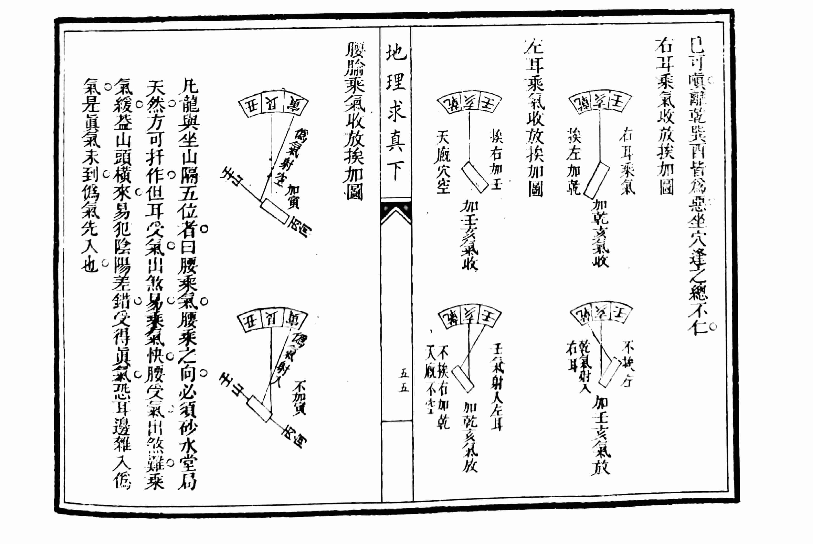 地理之学,与地术不同,地术者入门即知祸福,登山便识兴衰,以之验地则神而曲,以之扦坟则荒而谬,此盖异瑞邪jiao之所以惑世诬民也,若地理则不然,夫地者稟天之气以成形者也,而理即寓於形之中,故或峙而为山,或流而为水,刚柔清浊之各分其体,即吉凶善败之互显其应,其呈形也有目所共识,其為理也夫人皆可知,固非若业地术者之吞吐其说,隠怪其行,傲於人曰有秘诀,私诸已曰一灯油,一似地之在宇宙间,别有一道焉而不可以常理测者也,且夫荣枯得丧之散见於人世也,何一不关夫山川灵浊之气所以徵应哉,然试观发福之墓,有一人不知其为穴之吉者乎,败绝之塚,有一人不知其为坟之凶者乎,是地也,显诸形也,未尝不予人以可见也,载诸理也,未尝不合人以可知也,独奈何仰观俯察,古圣兼尽其学,后人并弃其功,遂置堪舆为专家,而究心此道者盖少,无惑乎江湖术士,皆得挟其技以遨游於巨家大族之门,而人卒莫之察,即闻有一二精明之士,知其术之足以误人而不可信也,又自囿於一知半解,转不能力破其奸而适滋其惑,嗟乎,此地理之所以日淆,而地术之所以日盛也,子深疾乎此,爰拽罗眾说,去其伪,存其诚,一切艰深刻苦之词,荒诞不经之论,槪置不用,编集其书曰求真,凡以订作案头缮本,以为一巳平时继开之资也,而二三同志见之,惩恶而付之梓,予不得已,勉为灾诸梨庚,即藉是以质之当世,庶几其或有以教我者乎。