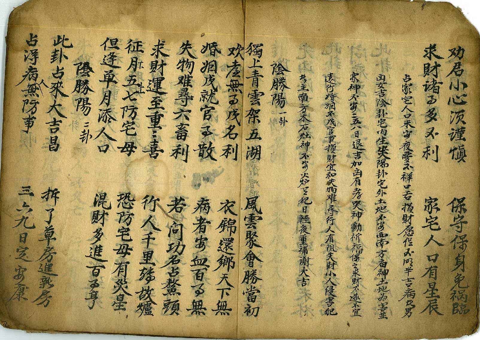 内容包含:先天神卦、立卦断法、送星宿方、论禄马起例、鬼谷先师看禄马吉凶、论张天师看文吉凶、论甲子病吉凶、论十二支干得病吉凶、论六十甲子得病吉凶、论十二支干甲子得病吉凶日、论时来问病吉凶、论人来问病所见断法如神、论来人问病断法、师至病人家看法、论见怪日时看法、论十二支见怪法、看眼目犯方一宗、送瘟疫吉凶诗、论年王送瘟吉日、看秘卦一踪等。