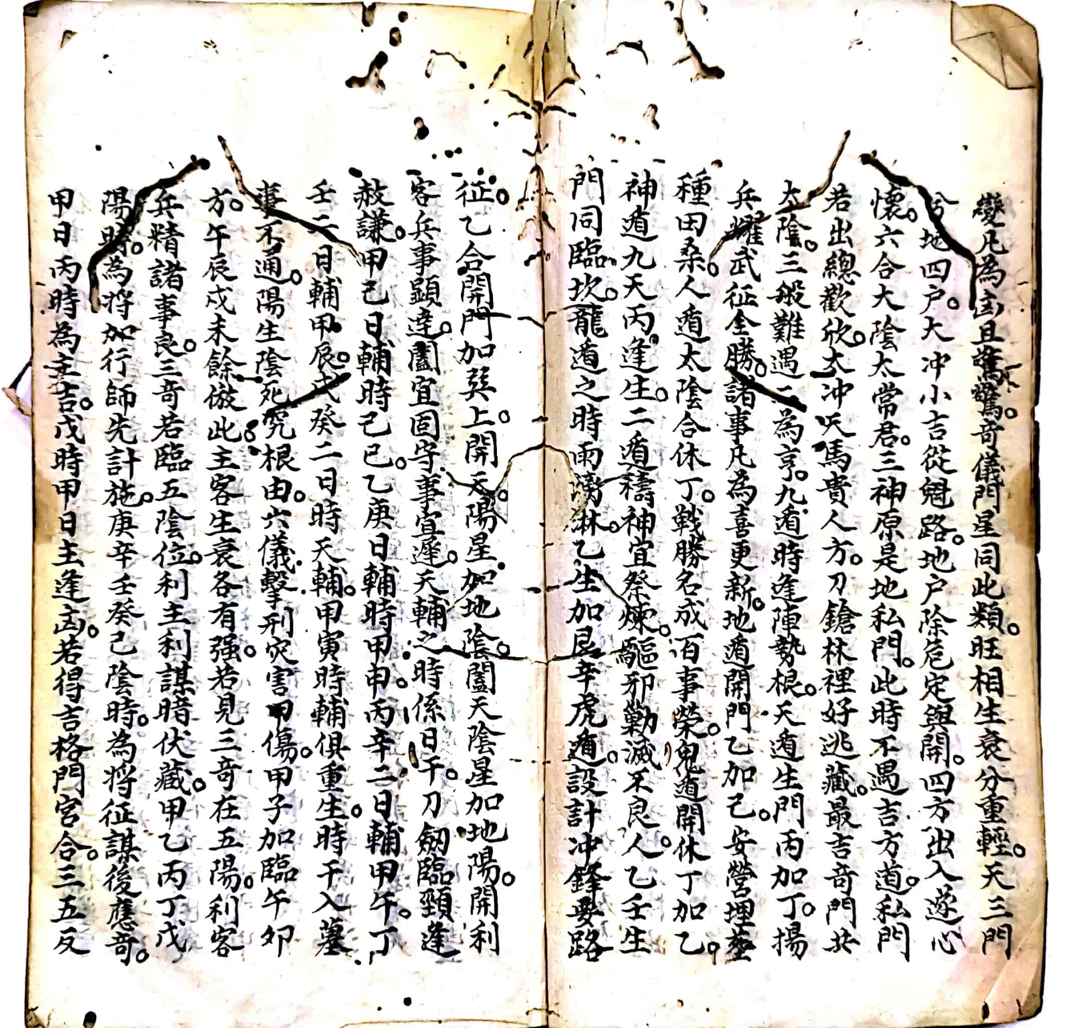 《甘氏汇集奇门一得》手抄本,全本共138个双面,合计276页,末尾几页稍有破损。