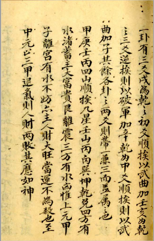 原题「此篇词浅理深,当沉潜体会,非一览可得。云间蒋杜陵大鸿氏秘本」。此篇又名《星卦通义》、《星气通义》,一些传本相传是蒋徒吕相烈著(三元地理秘本,常有同书名而内容出入颇大,当细心对比)。本钞本则作蒋大鸿著。此篇以卦、气、元、星: 卦气相通(三卦通气)、 星符元运去释四十八局、打劫法、排龙立向、排星定局(卦) 、挨星等秘; 所谓「元空之秘旨, 交媾之真机」。 其中又会通三元三合之理。三元家会通三合家之说,此说未见于蒋徒如张仲馨等一脉秘本,反与玄空湘楚派江西吉安尹有本(一勺) 《地理四秘全书》中会通三元三合之说相近。