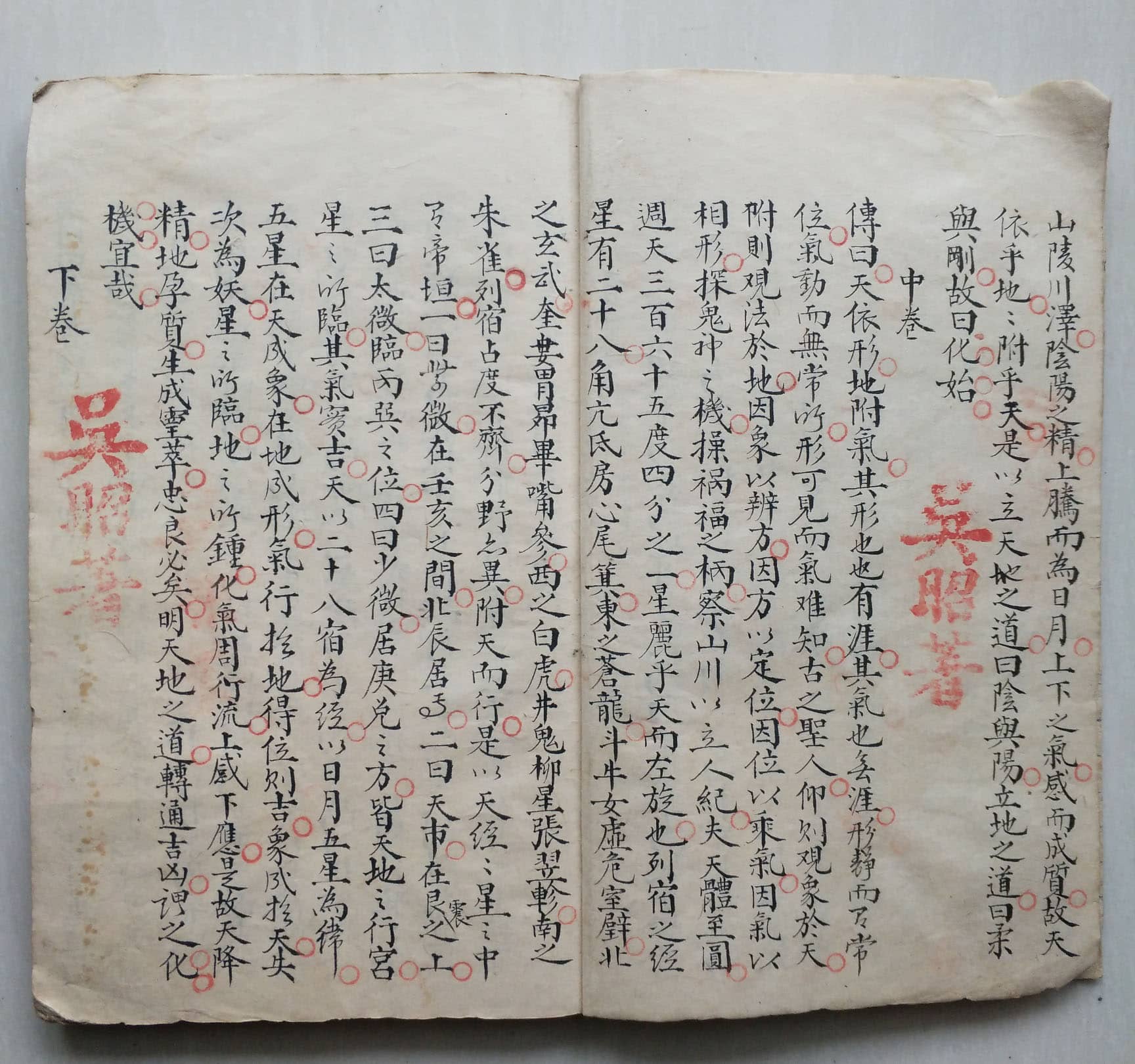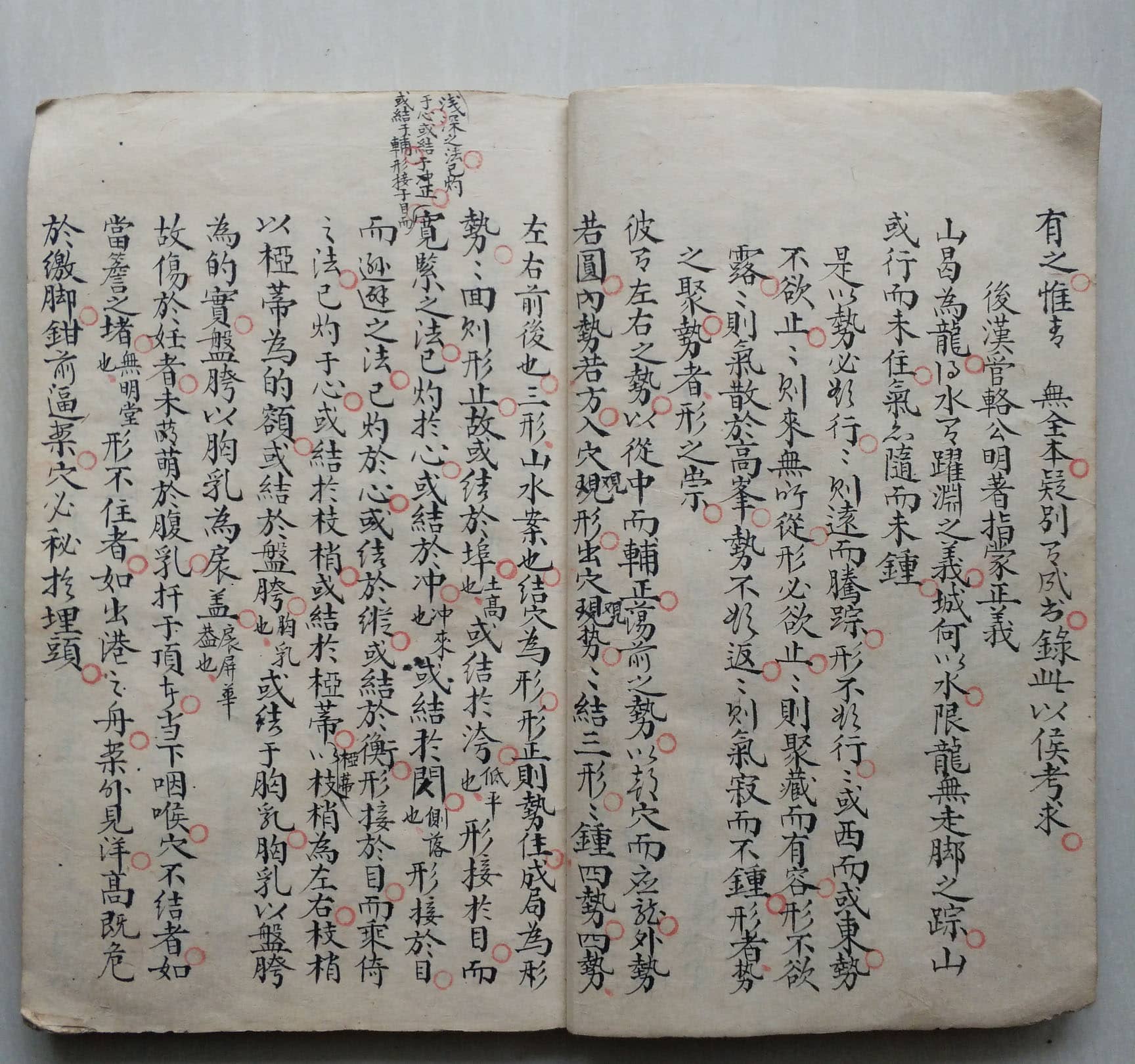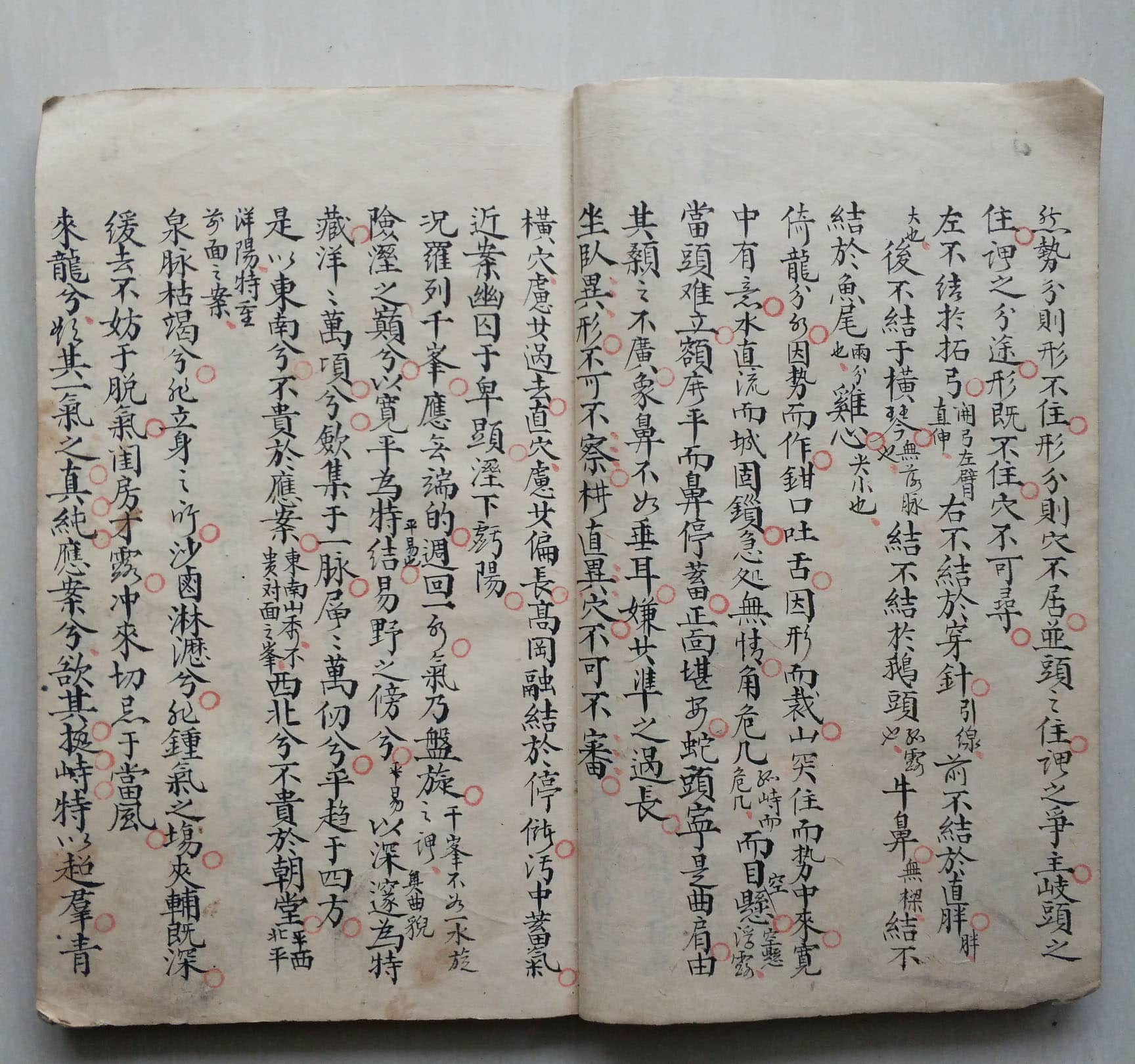 《地理正宗青囊老传》,(清)吴昭著,陈卷山子珍藏手抄本。内容包含:古青囊老传、古玄女三字青囊经、古青乌子青乌经、后汉管辂指蒙正义、郭璞狐首经、晋郭纯塟书、寻龙要诀、峦头九星正变、穴法纂要、识龙说、穴法说、砂诀说、善恶水论、分合说、斗临赋、游星濬源、金光斗临经、唐杨曾经序、明蒋大鸿氏辨正等。全书共59个筒子页,合计118页。