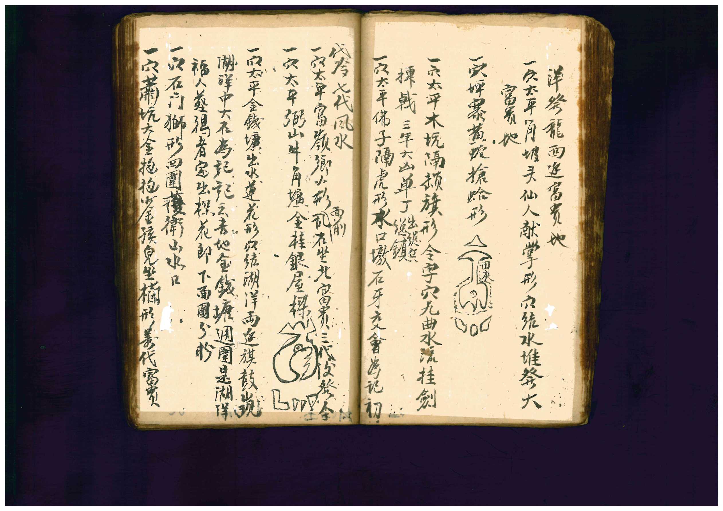 《阴阳宅地理汇宗》地理撮要,上中下3册,清.廖腾高家藏,全本共247个双面,合计494页。