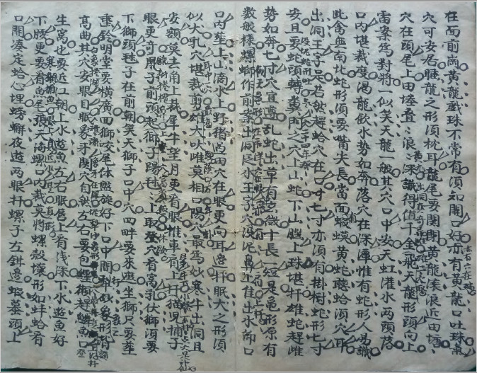 内含,杨公三百六十形图点穴歌、穴情、砂诀、水法、真机赋、浮砂五色断法、过去未来断法、千金八卦书秘断、论进退笔砂断、九天玄女看穴法、用罗针下盘针法、看龙断代数吉凶龙向阴阳相配坐穴分金诀、消峰话度宿度出入初中未关秘传诗诀、砂法分房定位断诀、消峰秘诀、用五行起长生消水、断房分定位图、论行运代数、放水秘诀等。