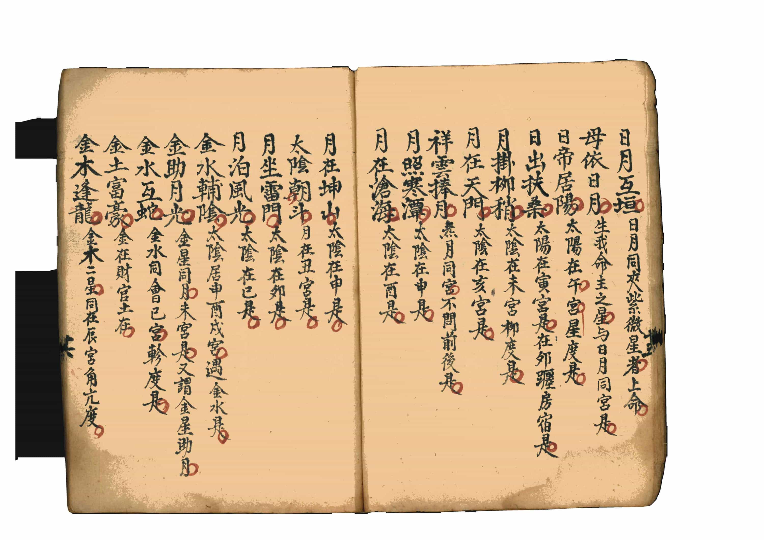 金罗会入是阳宫,父母官灾不害终,不见瘟㾮并泻利,刀兵之下塟為徒,水孛木土照阳宫,命招父母主强凶,贱身压疾宜到老,必然染疾到临终,金罗会有一般同,重拜双亲得始终,生母不须全送老,必遭疾死塟无空,金月交辉夜更明,功名不问一般情,假饶身命俱底弱,𫄚上文章举笔成,计都相逢守命宫,水為身命又相逢,金人好个娇娆女,化吉成权近贵翁,两宫进贵三朝富,二主临财万顷田,更得木罗来会合,定敎荣贵播王度,孛星若也守命宫,不可逢之便说凶,必定為人多计较,相交未可许其忠,孛星若是守财时,必定其人不妄為,又主慳贪无厚捨,更从财上用心相,彭祖如何得命长,双鱼太白在其中,孔人得遇逢此如,何虑天年打少亡,日月同宫照四正,富贵双全并无此,若加恶曜乱纵横,又主终身多疾病,寿星逢夺寿莫延,五福之中俱不全。