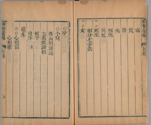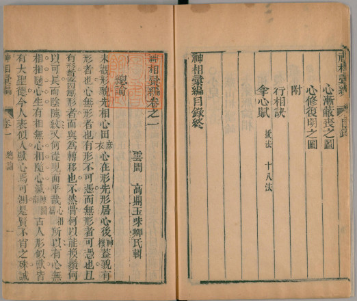 《神相汇编》4卷+续集1卷,被收录于术藏第76卷,子部珍本备要第331种。此书为清高鼎玉辑,清道光23年(1843)上洋刊(江左书林藏板)本。