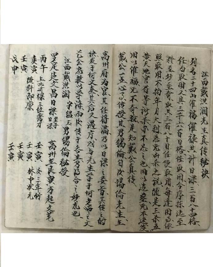 《江西地理戴洪润先生真传秘诀》,江西戴公秘课真传手抄本,全书共40页。含江西戴洪润先生真传秘诀,江西戴锡伦秘传口诀(戴洪润为戴锡伦长子),选择撮要等。