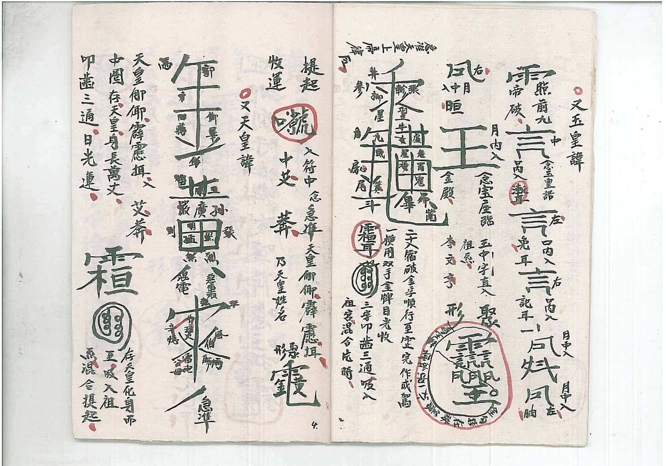 内容包括:紫微讳、聚形、又紫微讳催生用、又玉皇讳、聚形、又天皇讳、又六帝伞、又九清九帝总伞、又天帝玄机、又祛邪紫微架然放箭妙秘、又玉帝排驾妙、又总召讳、又小牌金讳、又起退土犯符式、又截虐符、又治虐画饼法、又镇土即煞符等等。