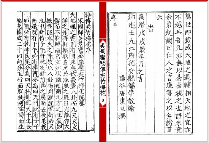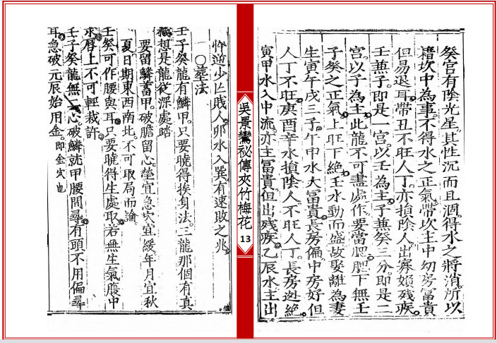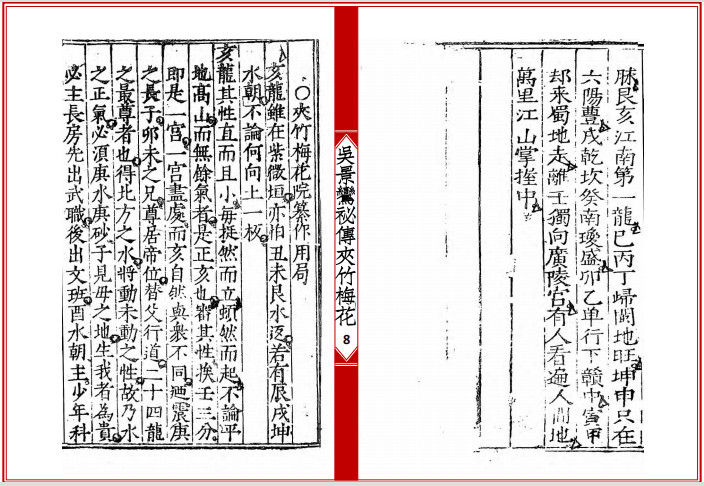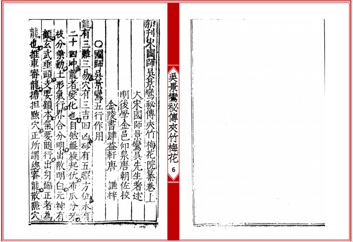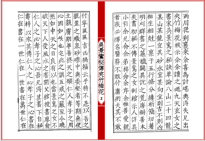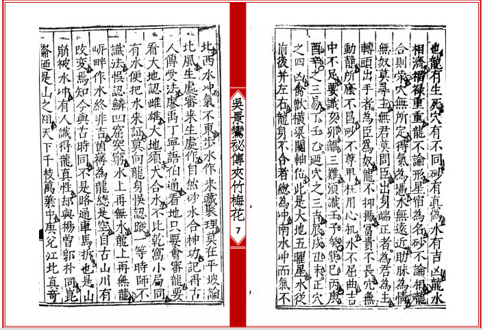 《夹竹梅花》全名《新刊宋国师吴景鸾秘传夹竹梅花院纂》,堪舆类古籍,此书为宋朝国师吴景鸾著,其还有两个比较出名的著作,其一为《道法双谭》,其二为《天机望龙经》,本站均有发布。