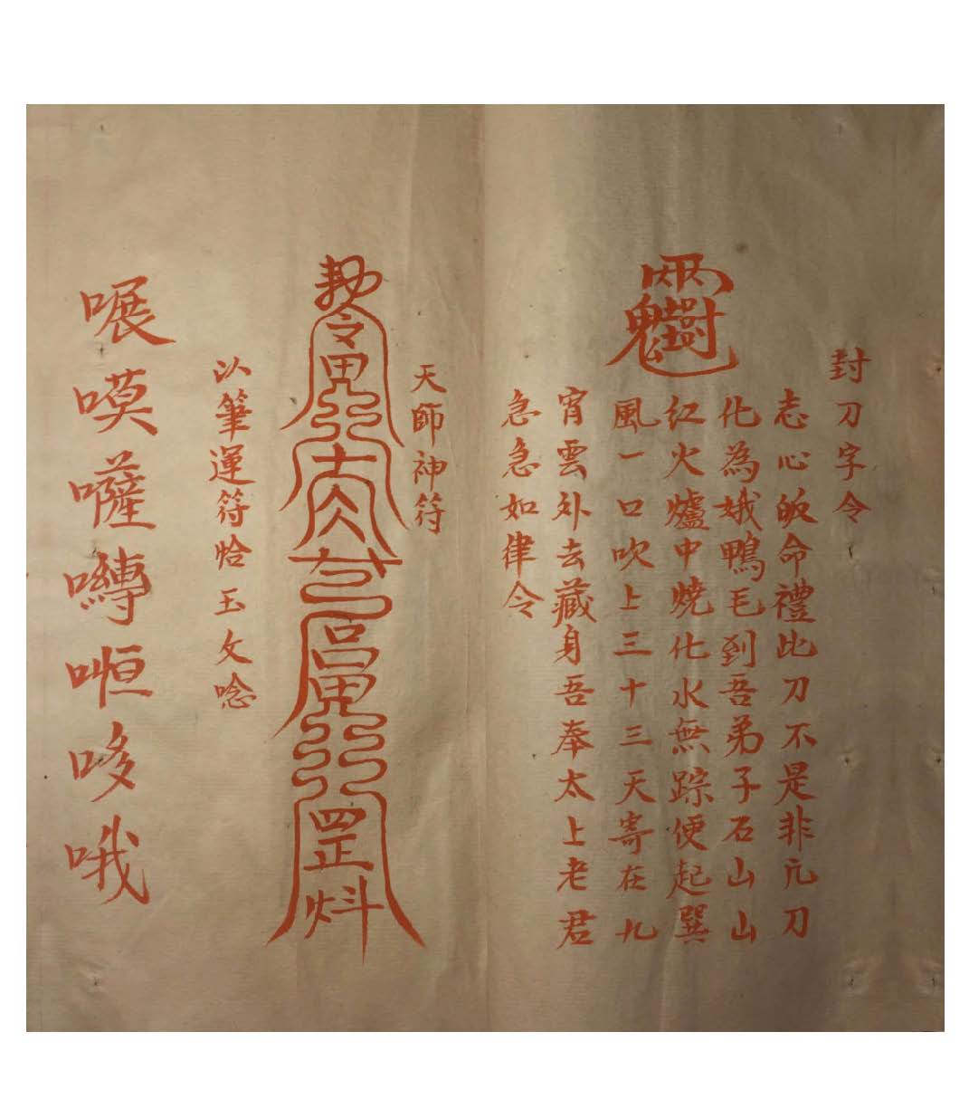 内容包含:雪山神咒、封刀字令、天师神符、北帝收邪符咒令、断血符咒令、驾斗符讳、铁牛铁马符令、太平灵符、保身符、护身符、厌贼符、禁口舌符、出行符、解官符、伤鬼符、散事符、退病符、禁官事符、禁虫蛇符、保丧家符等。