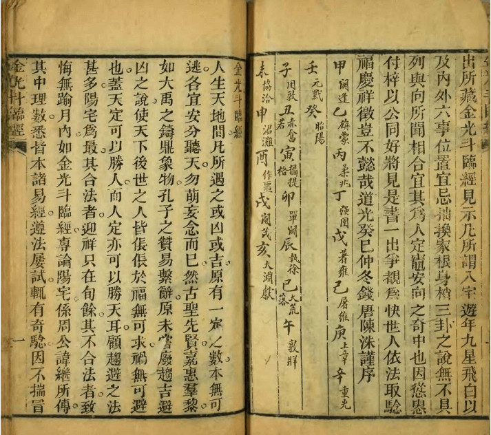 《金光斗临经》是部八宅风水典籍,本人所见版本刻印于清乾隆年间,因古籍字迹模糊,不敢妄揣作者姓名(在此也向这位风水先辈致歉),看其序所属年代,此书作者大约略晚于清风水师张九仪、清江子,但基本是同时代人。按其书序中说,《金光斗临经》在此版本刻印之前,在民间风水师中早有手抄本流传。