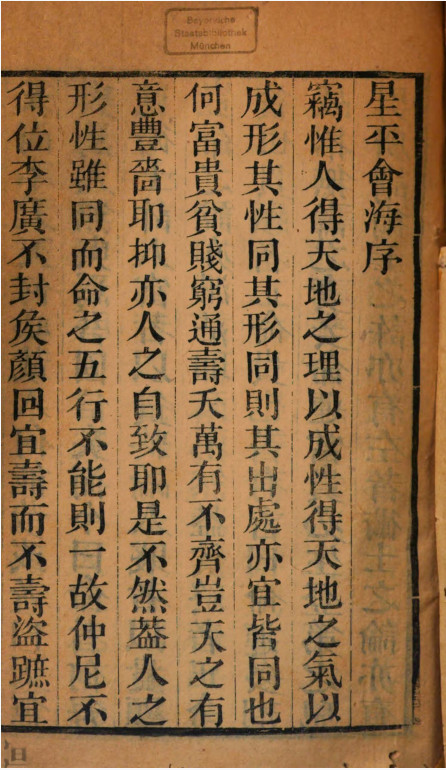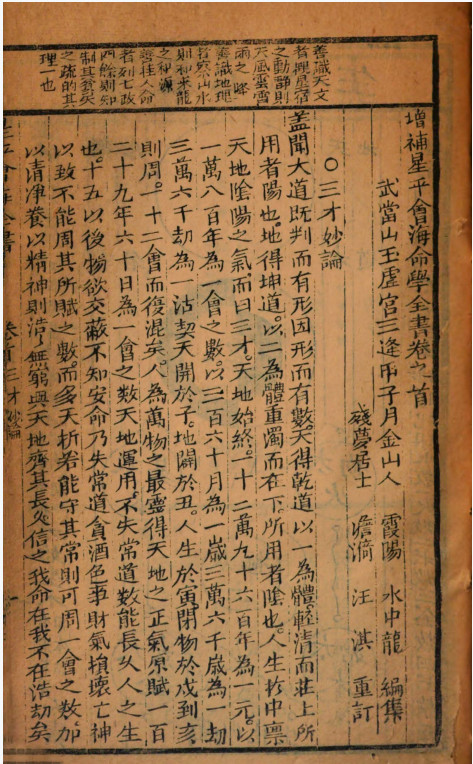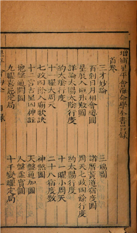 《增补星平会海全书》,被收录于术藏第57卷命理部,[清]水中龙编,此版本为嘉庆二十一年永安堂藏版。