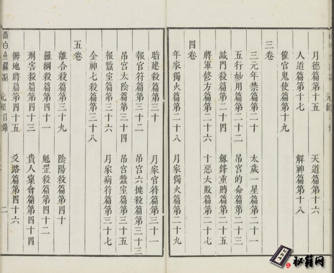 此内含:郭璞《郭氏元经》十卷、赵载《璇玑经》一卷、陈复心《阳明按索》五卷、刘伯温《佐玄直指》九卷、幕讲禅师《三白宝海》三卷,共五种。此为清康熙三十九年古歙丰南吴氏重刊本。