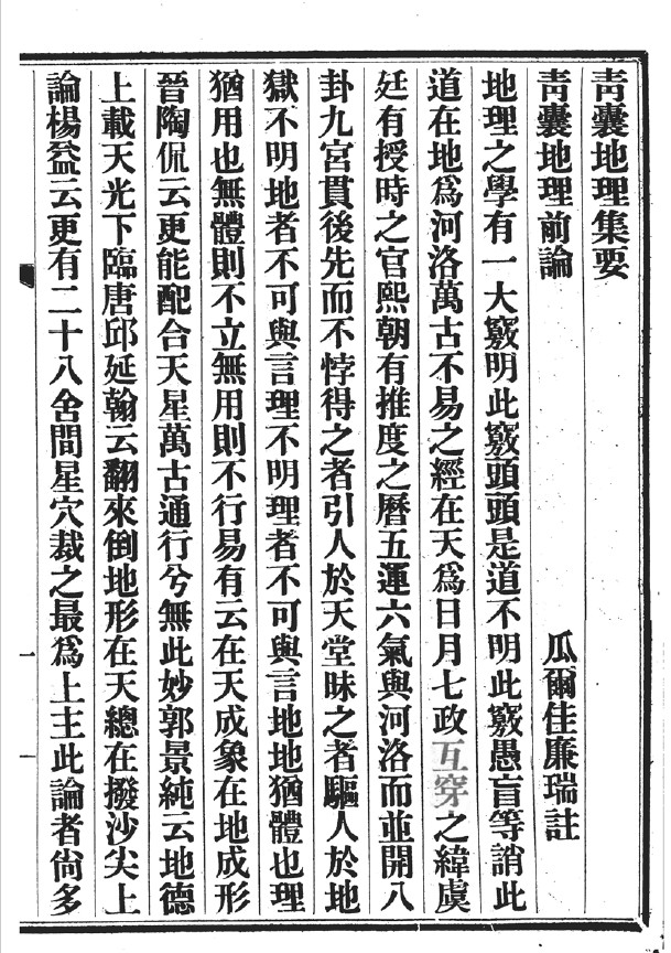 《青囊地理集要》,清.廉瑞注,清光绪33年(1907)北京琉璃厂文宝堂刊本。
