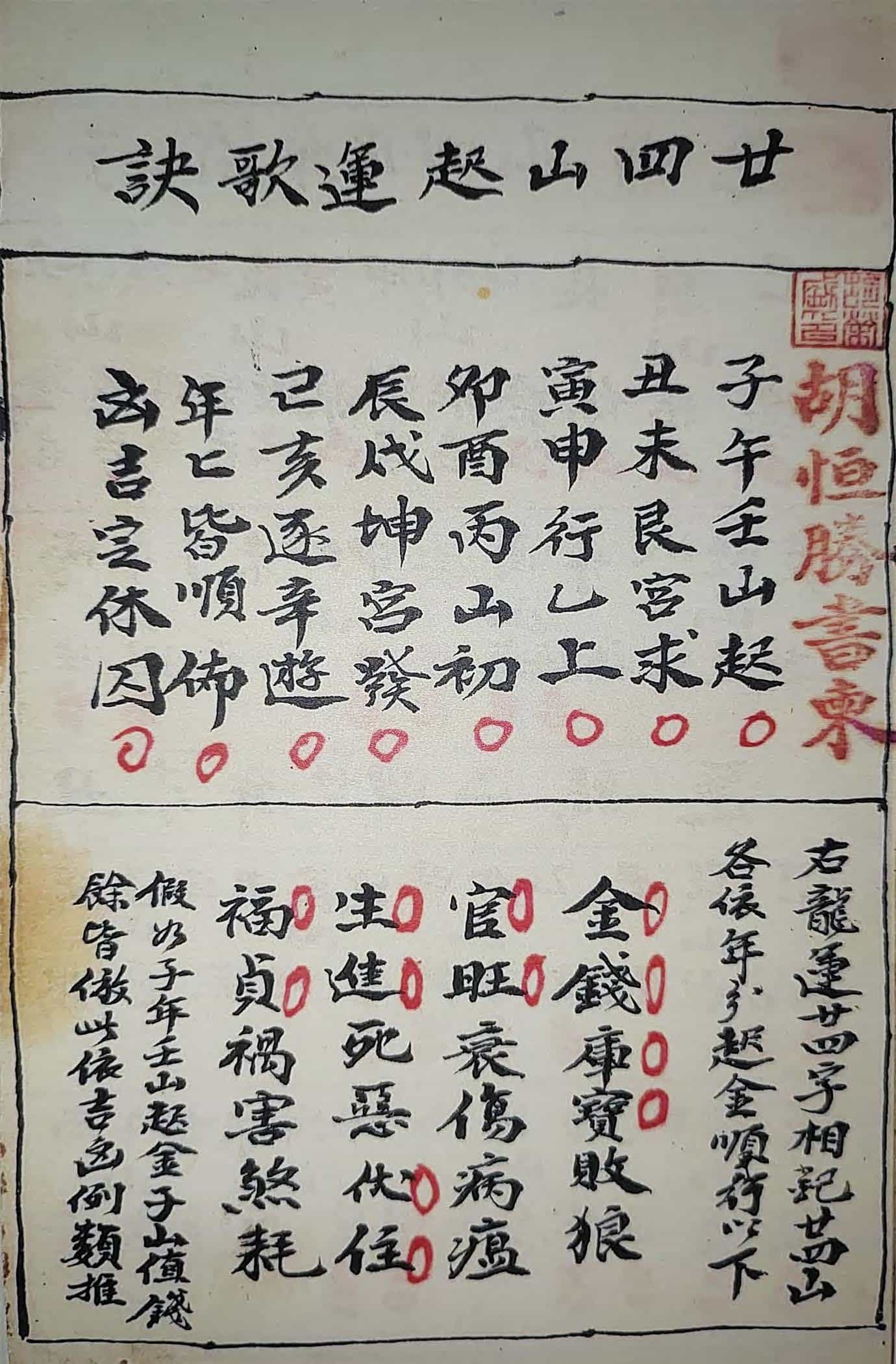 《二十四山起龙运斗首择日秘旨》,民国庚申十三年孟秋月吉旦,胡荣盛字㞶珍抄写取吉通书一本,付于子孙留传,全本共128页,胡恒胜书柬。